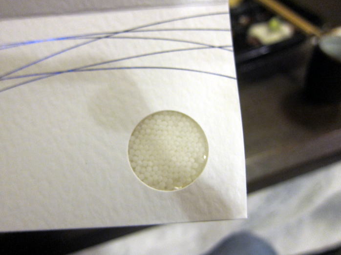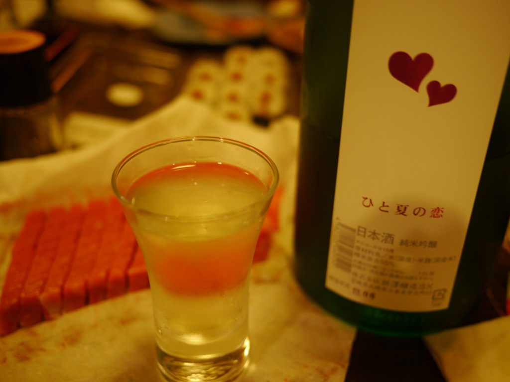 次にいよいよお楽しみの蔵出し秘蔵酒の登場です。アメリカのラスベガスのホテルで1本15万円で提供されていて、グラミー賞のレセプションでも振る舞われてセレブが飲んでいるというお酒を、雪深い札幌西区西野の奥地でいただけるという不思議さを感じました。新澤さんのお手紙をみると「究極を考えて9%まで精米した超純米大吟醸を送らせて頂きました。香りに頼らず、米の中心部分だけを味わう為だけに醸しました。」とあります。呑んだ方のみに感動を伝えられるように雑誌やHP等も紹介不可ということで。このお酒は写真をとらずに感動を味わいました。
