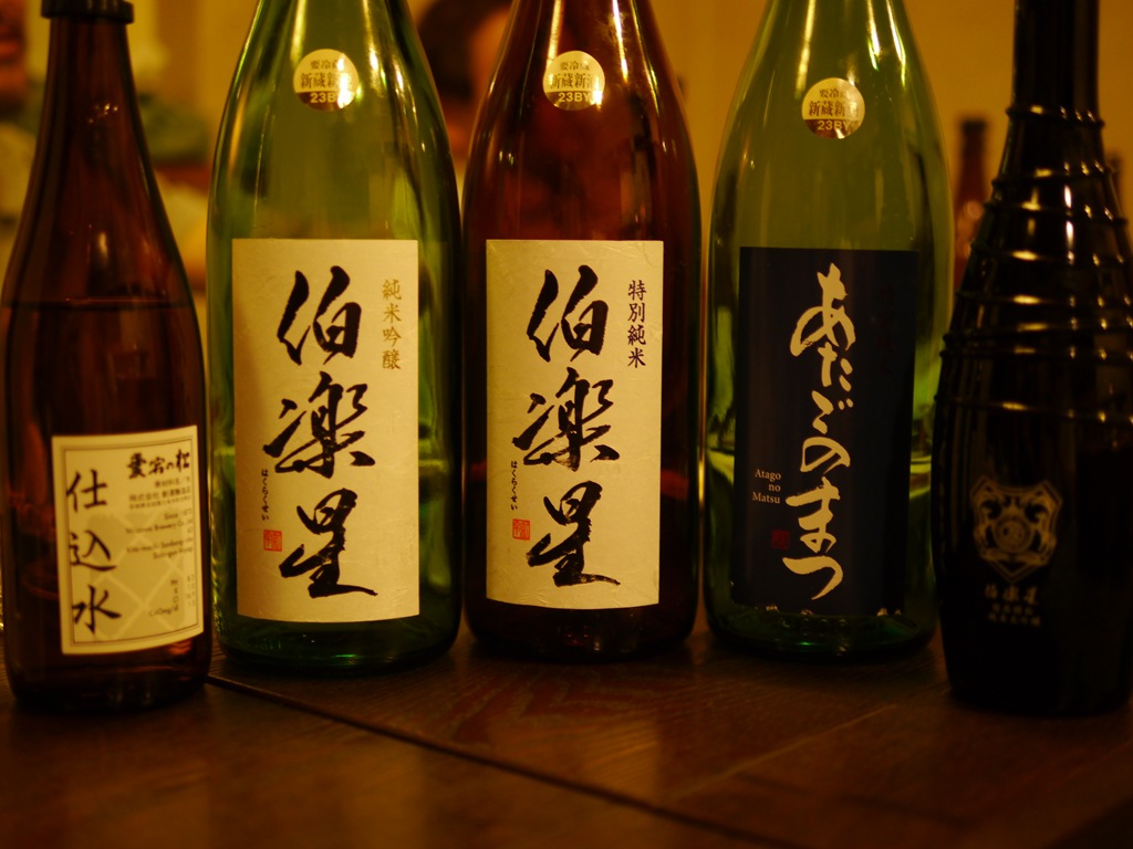 蔵の華を55%まで磨いた伯楽星の純米吟醸をいただく頃にはかなり酔いが回ってきました。これまで登場したお酒を眺めるとどれもおいしくて最高の日本酒です。