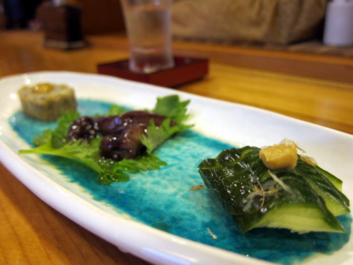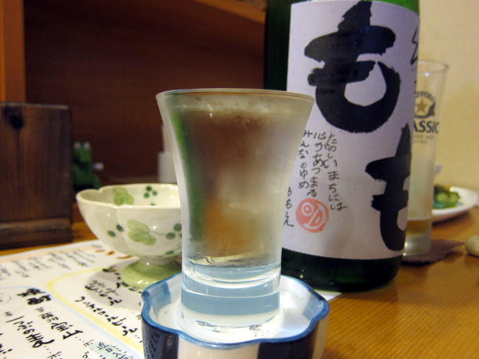 つぎにたのんだのは、すいめい庵のオリジナルブランド「もも」です。筆は娘さんの手によるものだそうです。宮城の阿部勘酒造店で蔵の華という酒米を55%に精米した純米吟醸酒でこくがありながらすっきりと飲める飲み口のいいおいしいお酒です。