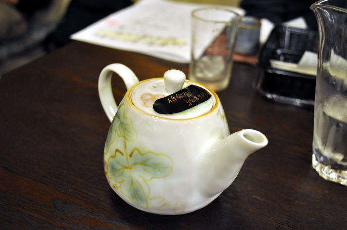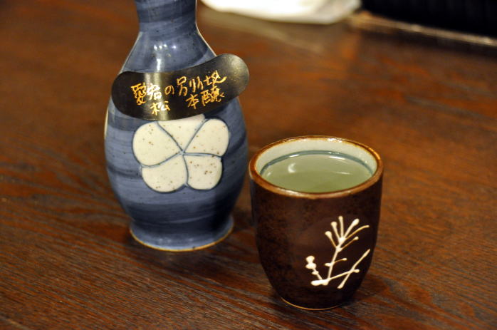 三種類目には愛宕の松別仕込み本醸造酒が登場します。酒米は非公開となっていましたが、店主のお話でなぜ非公開かという説明を楽しく聞かせてもらいました。本当にいろいろ知っていて感心しました。お銚子にはおかみさん手作りのラベルがあり、うれしい気持ちにさせてもらいました。別仕込みについてもわかりやすい説明で意味がよくわかりました。