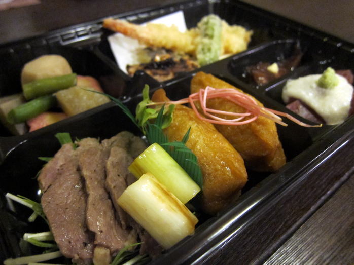 この日の会は店主さんが司会進行で厨房に立てないため最初に特製お弁当が登場しました。鴨ねぎにまぐろ、煮物に天ぷら、ホタルイカの沖漬けな真ん中にあるおいなりさんはなんと蕎麦いなりです。とてもおいしい!愛宕の松や伯楽星にぴったりでお酒がすすみました。