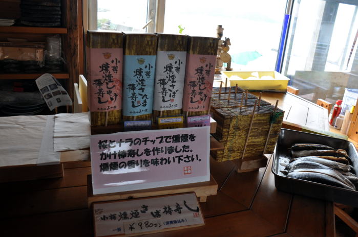 しばらくして運ばれてきた棒寿司、最初多いかと思いましたが、ぺろりとおなかにはいってしまいました。途中、日本酒はありませんかと聞いてしまいましたが飲み物はビールのみでした。そばには自家製の燻製機がありました。