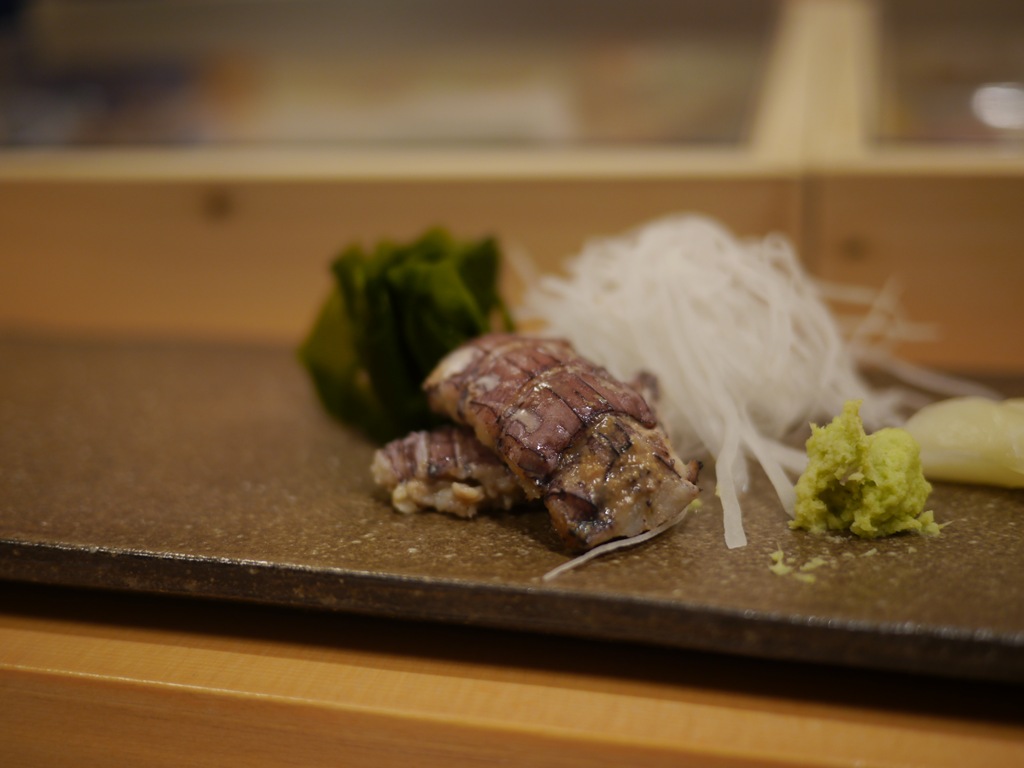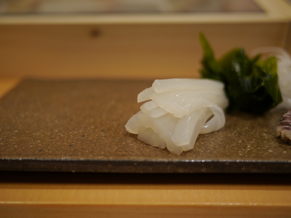 きれいに切ったいかを山わさびでいただきました。お酒があいて東一をいただきます。