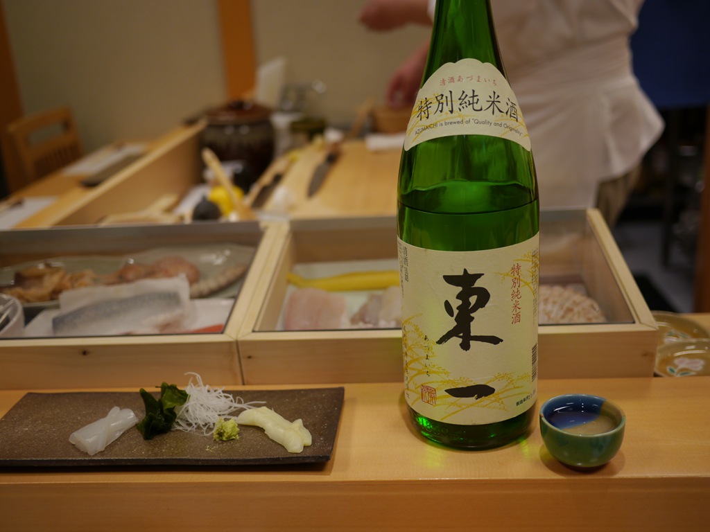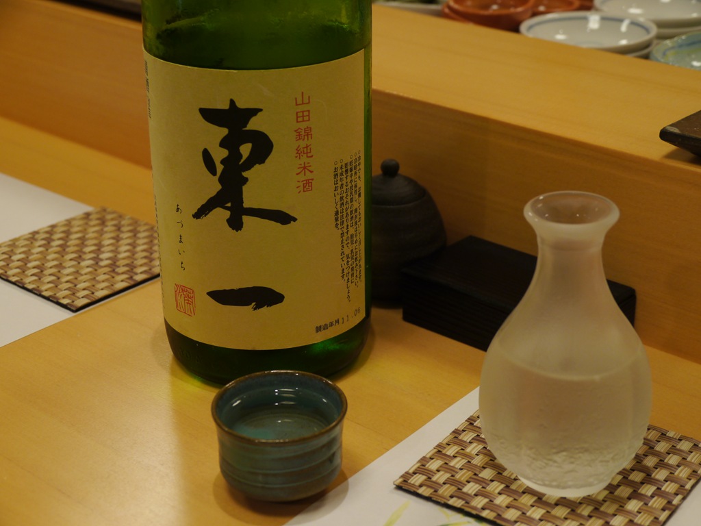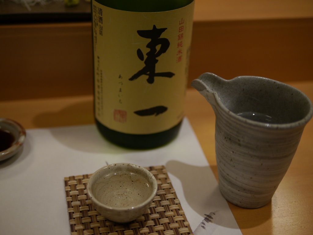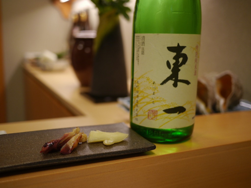 おいしいお寿司が次々と目の前にきて、あっという間に八海山が空いてしまいました。聞くと東一があるということです。これは珍しいとさっそくいただきました。一口呑んでこれは、お寿司にぴったりおいしい日本酒です。