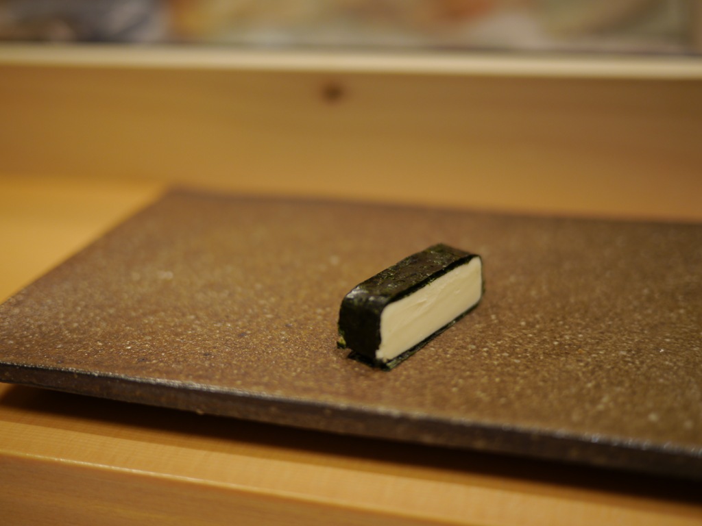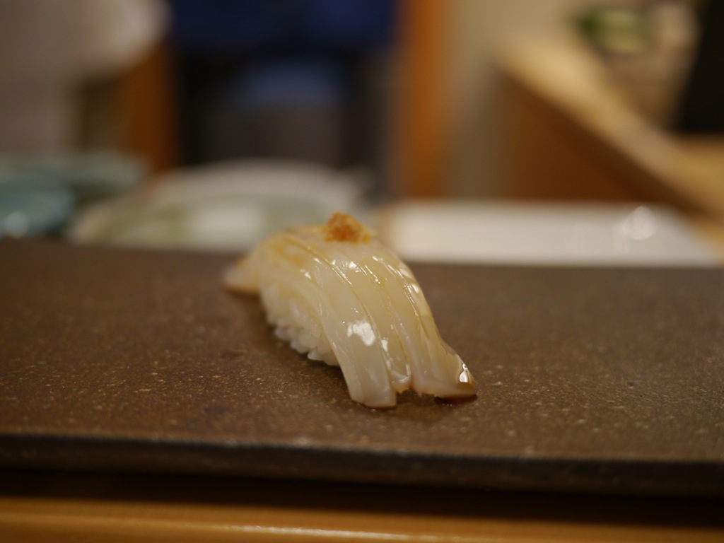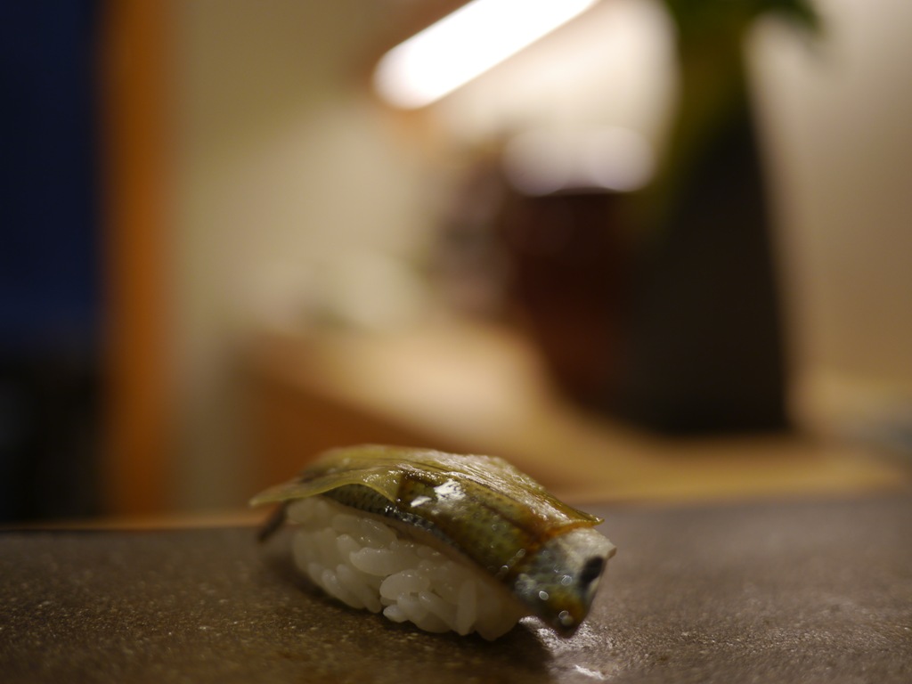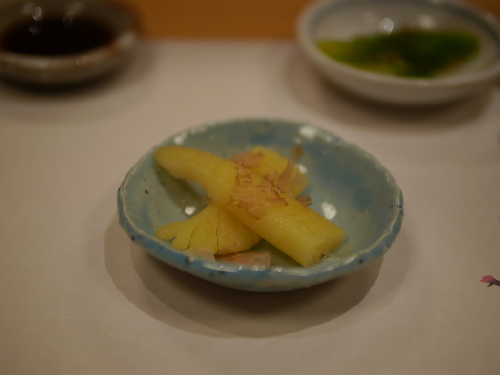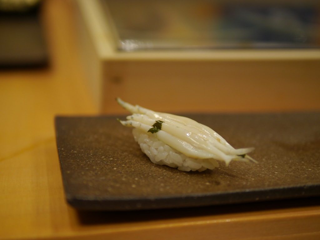 春の香りが一杯口の中でひろがりました。桜の葉でしめた白魚、3月~4月はじめの限定の味だそうです。記憶に残るお寿司となりました。