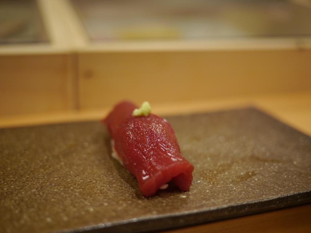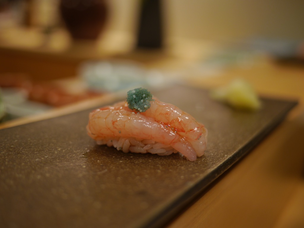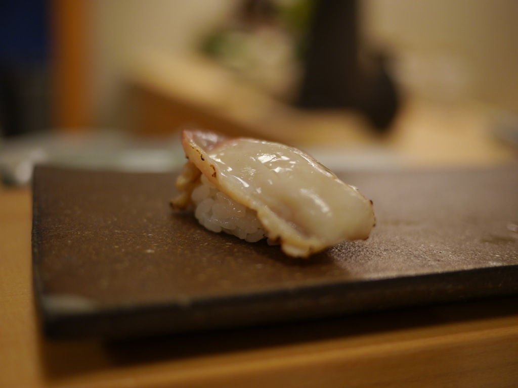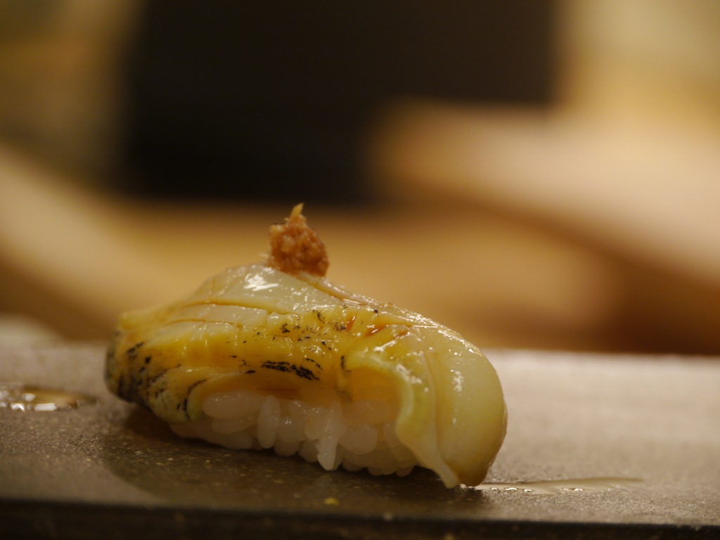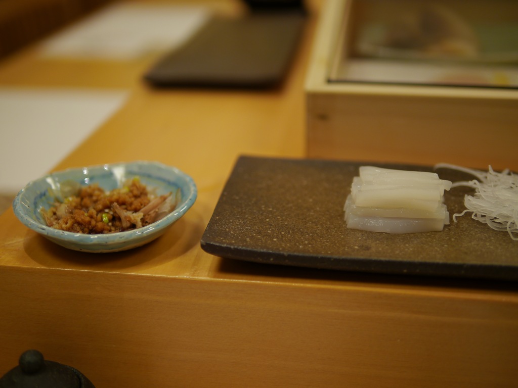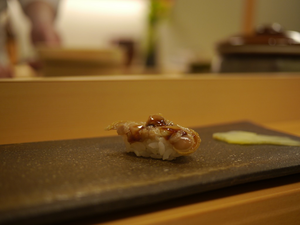 春の香りが一杯口の中でひろがりました。桜の葉でしめた白魚、3月~4月はじめの限定の味だそうです。記憶に残るお寿司となりました。