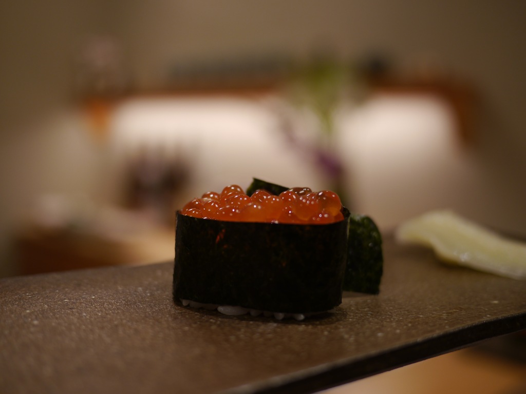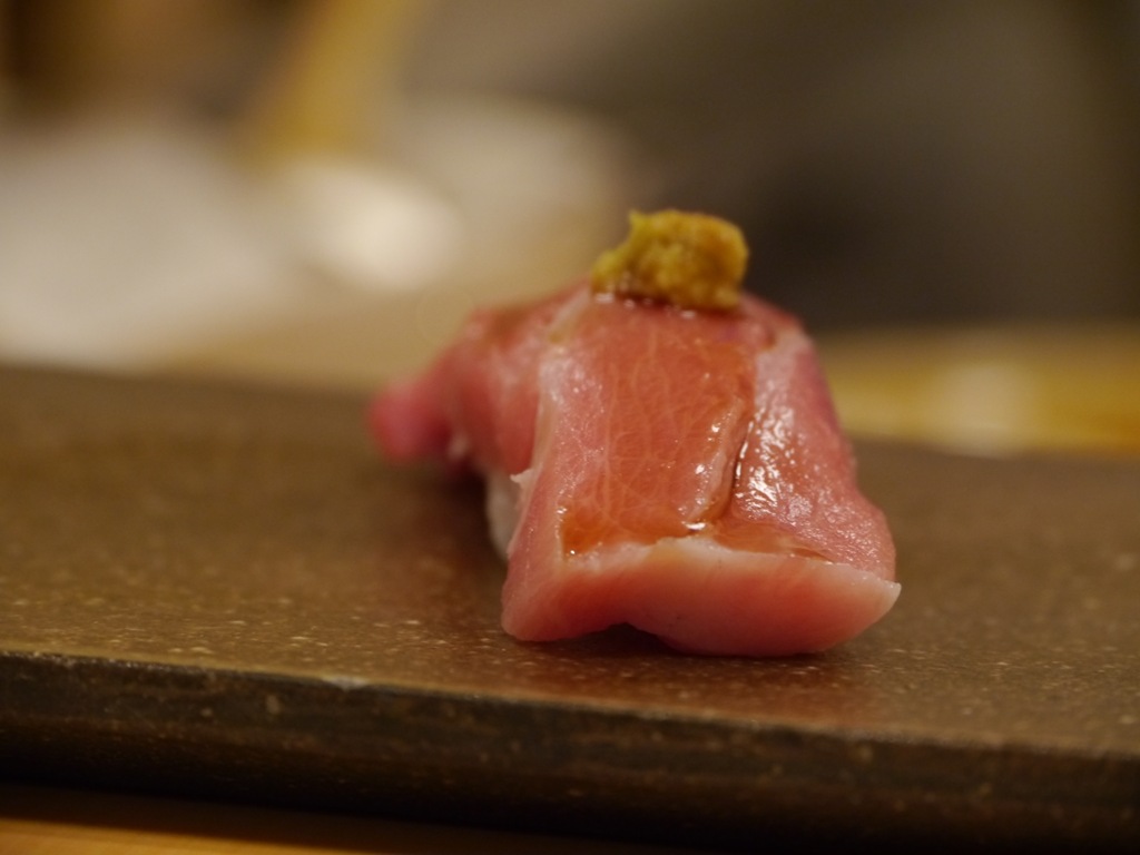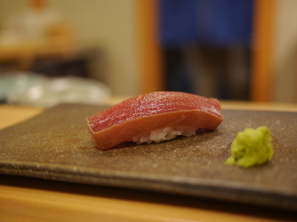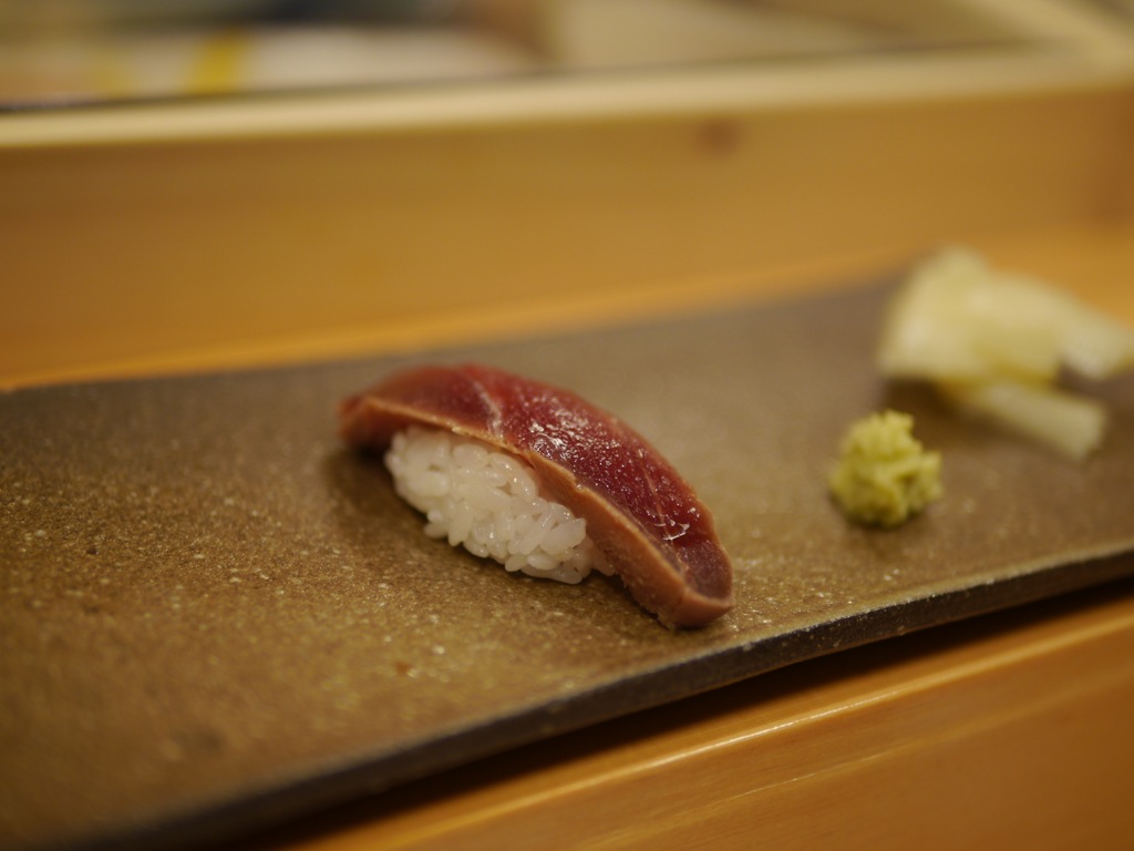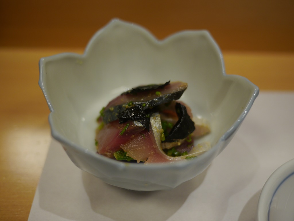 春の香りが一杯口の中でひろがりました。桜の葉でしめた白魚、3月~4月はじめの限定の味だそうです。記憶に残るお寿司となりました。