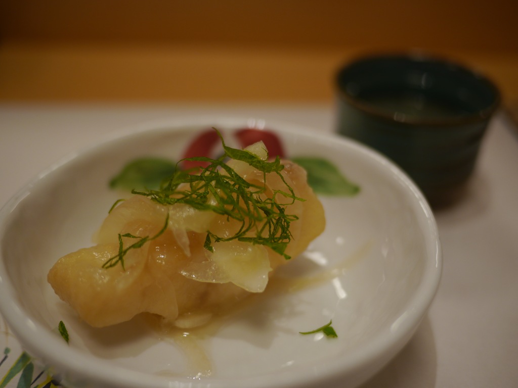 鮨さいとう自家製のべったら漬け うまみたっぷり、お酒によくあいます。
