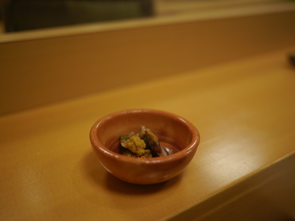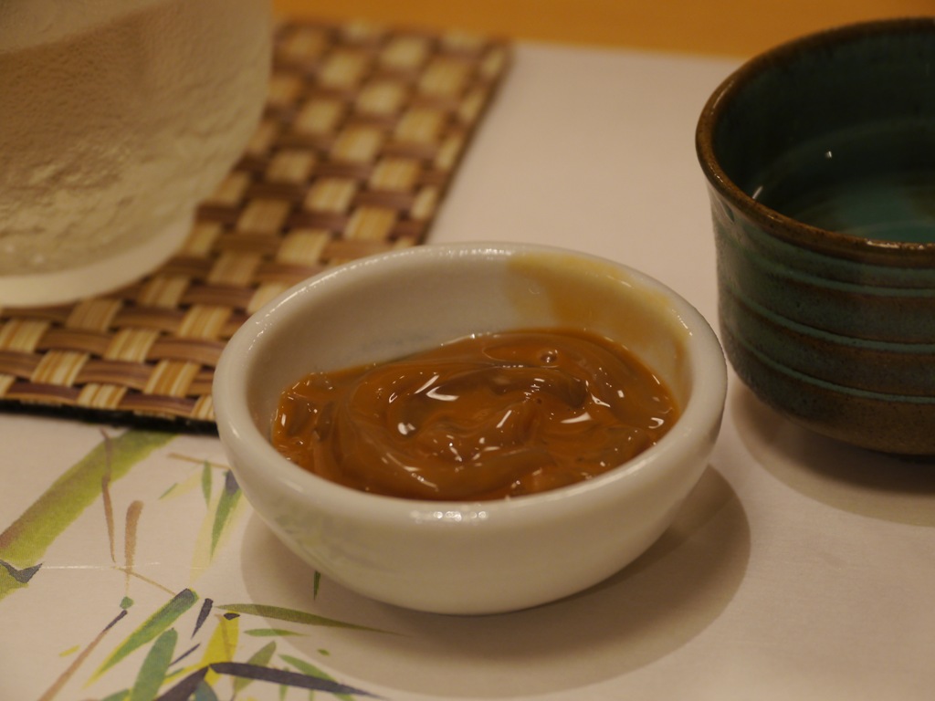 日本酒の肴にいただいたのは、ほやの塩辛、新鮮なほやをしっかりと処理してだしてくれました。甘み、酸味、苦み、塩み、うまみがしっかり味わえます。