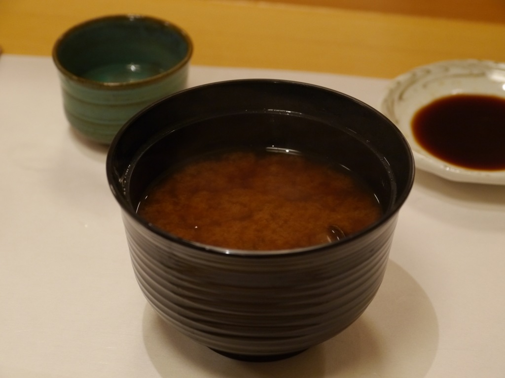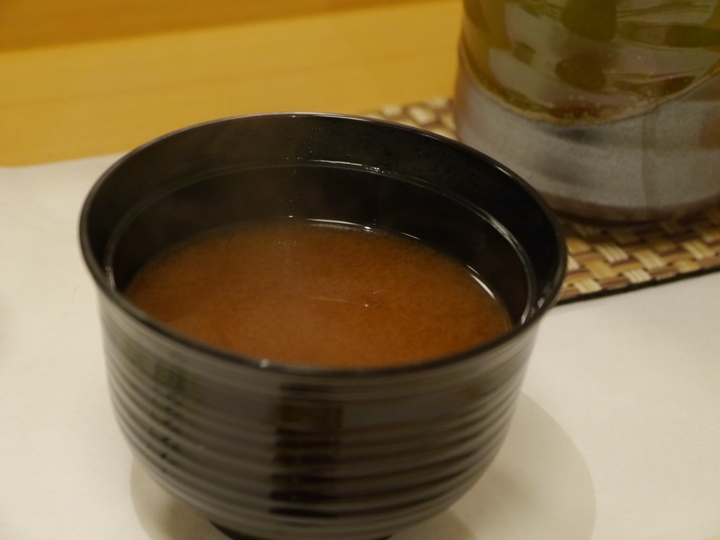 おいしいお寿司を堪能して、とてもおいしい赤味噌のしじみ汁をいただきます。お酒で疲れたおなかが復活するような感じがしました。