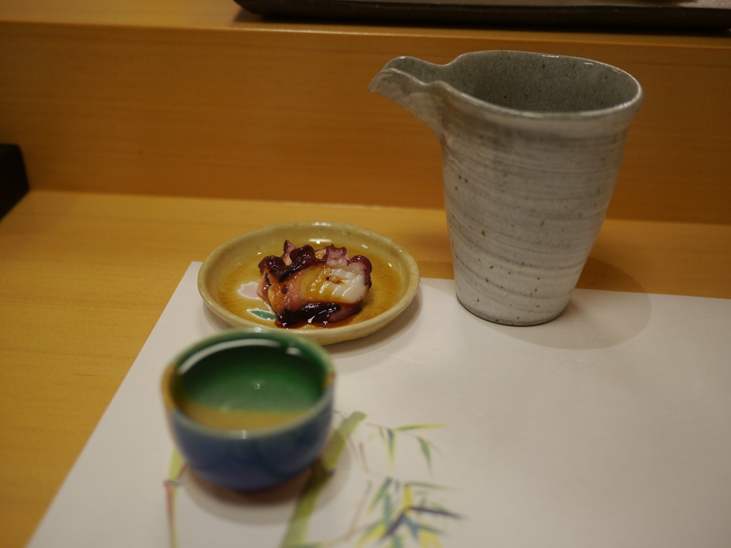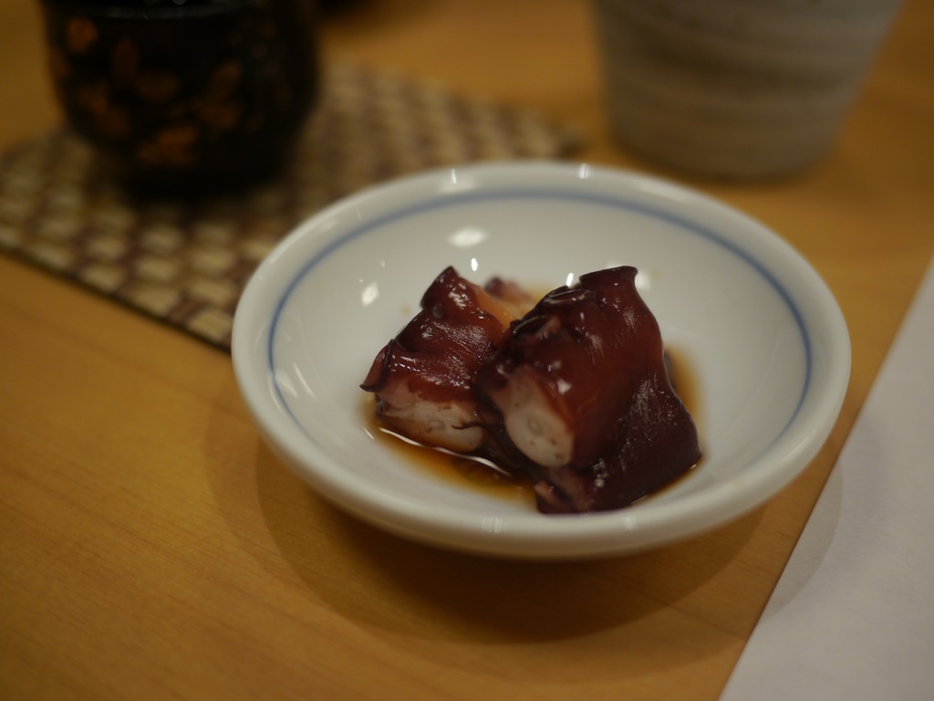 苫小牧から来た友人が、ホテルに帰る前に軽く、食べて帰りたいということで、立ち寄ったのは、JR琴似駅そばの鮨さいとうです。ちょうど、カウンタがあいていて、すんなりと入ることができました。まずは、日本酒をいただきました。お通し、タコの柔らか煮、口に入れると柔らかさとおいしさが、さすが寿司職人さんの作るお通し、とてもうまい