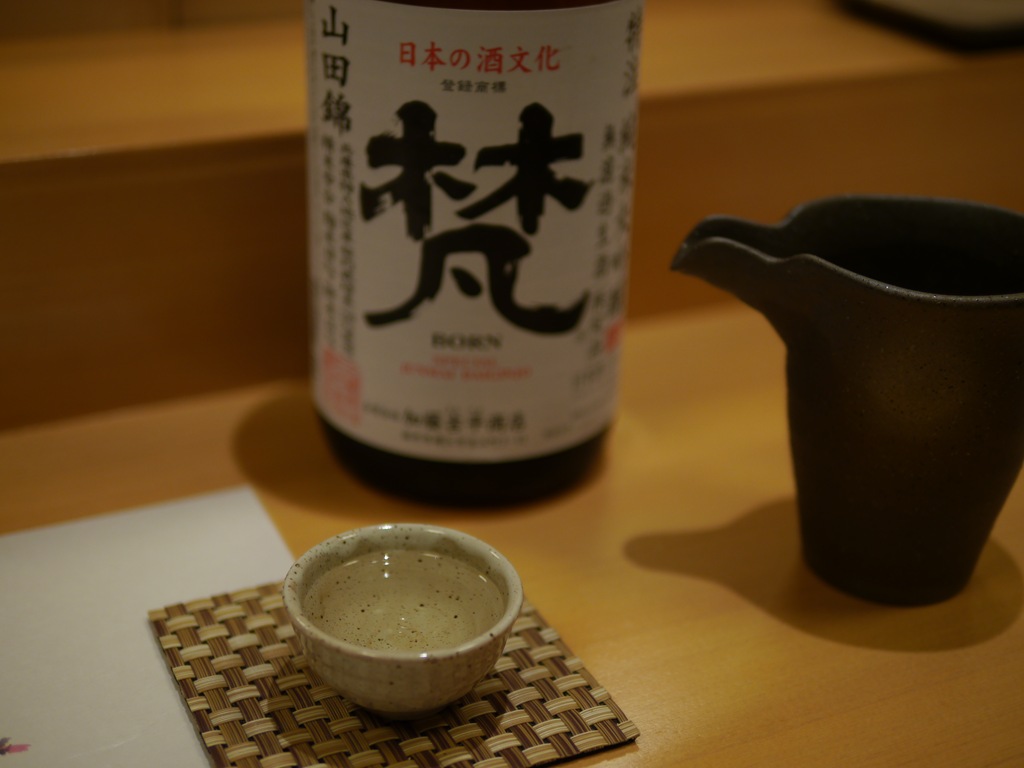 お店の前を通ると、カウンタがあいていて、これはチャンスと入りました。まずはお酒、冷蔵庫にはいつもと違うお酒がはいっていてさっそくいただきました、梵、しっかりとしたおいしいお酒。肴によくあいます。