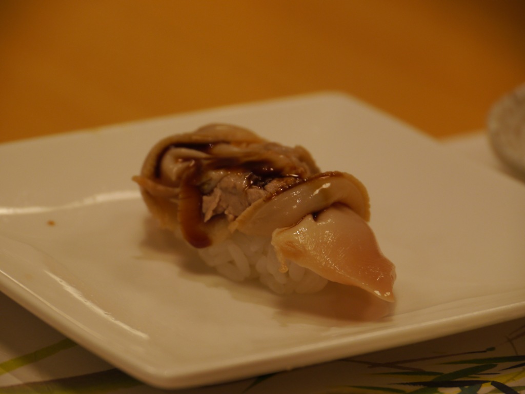 貝ひもの握り芸術的な美しさで、見ているだけで楽しいのですが、すぐ口の中に入りました。とてもおいしい。