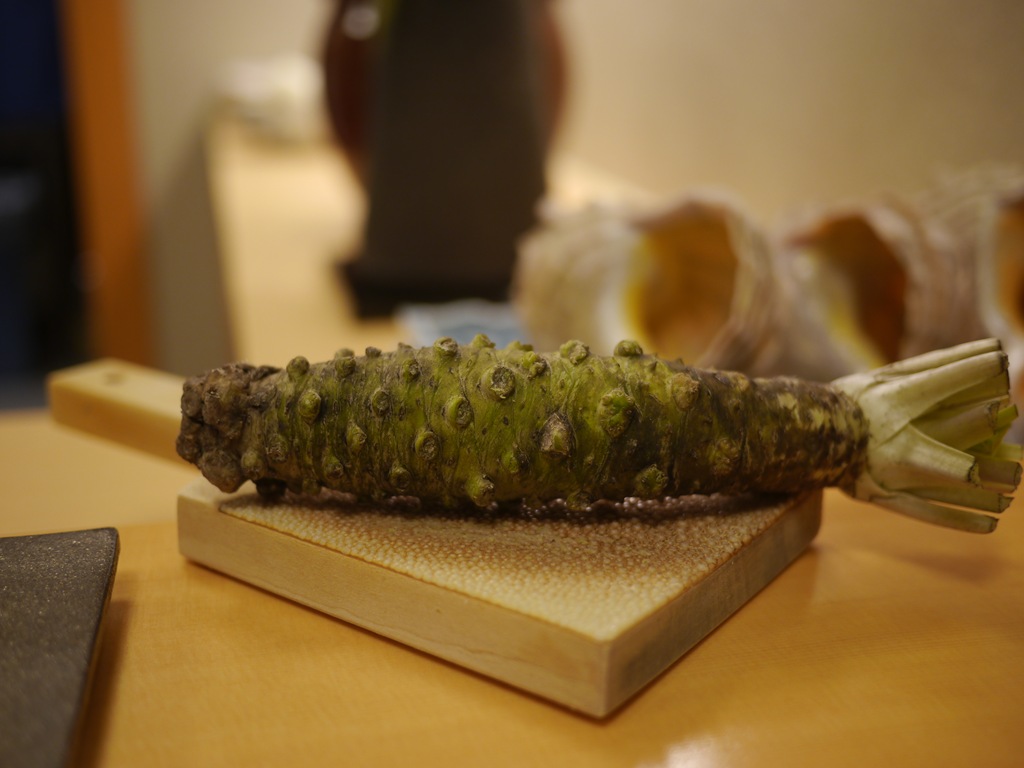 鮫皮の上のわさびをみせてもらうと、素晴らしい迫力、いい素材は存在感があります。