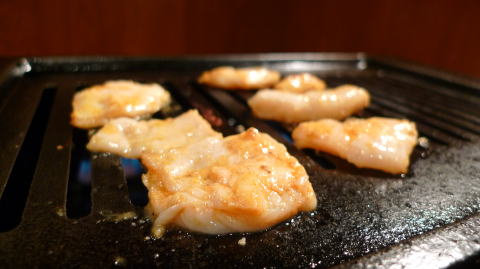 おすすめのホルモンをまず焼いてみました。ころんとした新鮮なホルモンです。塩味で食べました。