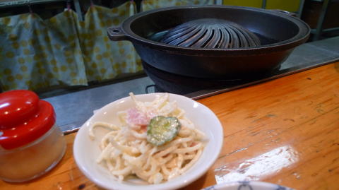 肉とセットになった野菜にはタマネギ、長ネギ、こんにゃくがついてぷりっとしたこんにゃくがおいしい。店主は阿寒町で生まれたそうで3月までの冬期は阿寒町にエゾシカの狩猟にいき、新鮮なエゾシカ肉を出してくれます。
