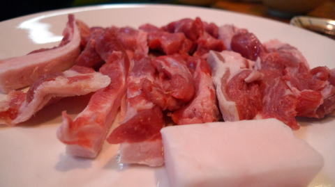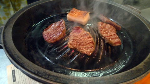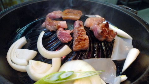 特製の鍋に油をひき、しか肉をやくと、とてもうまい