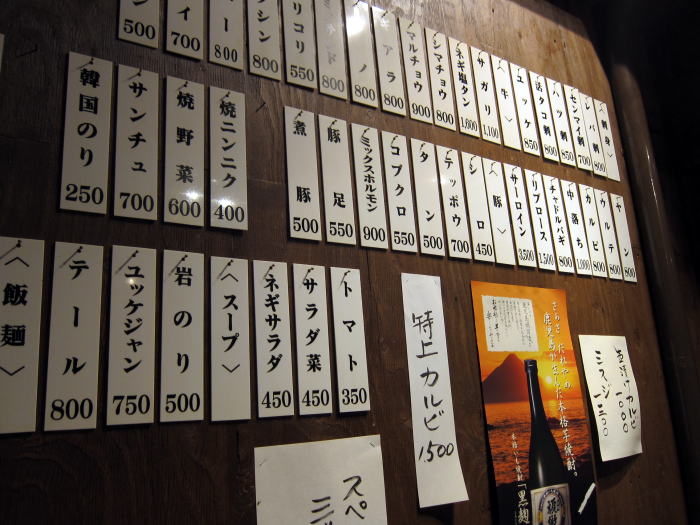 まずはビールとチャンジャをたのんでメニューをながめます。