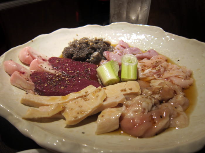 焼肉キムチで壁の豊富なメニューから選んだのは、スペシャルホルモンミックス1600円です。きれいにもられたホルモンはどれも新鮮そのものでうれしくなります。