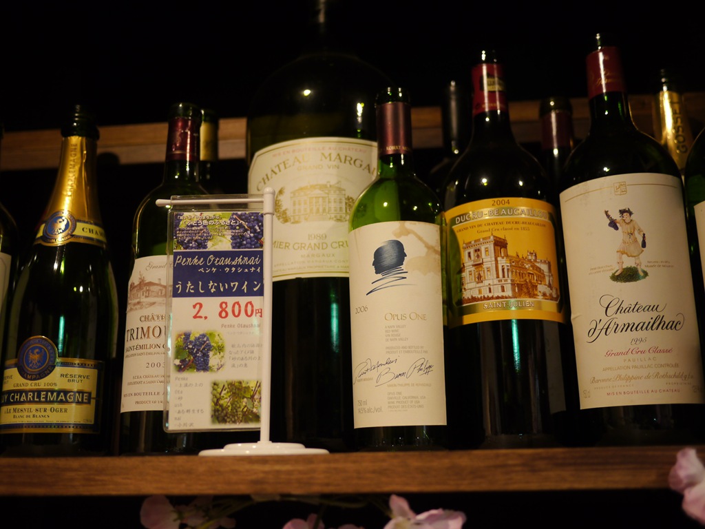 ワイン棚にはいろいろなワイン瓶が並んでいます。オーパスワンもありました。ついつい足がむく、懐かしいばんけい苑。