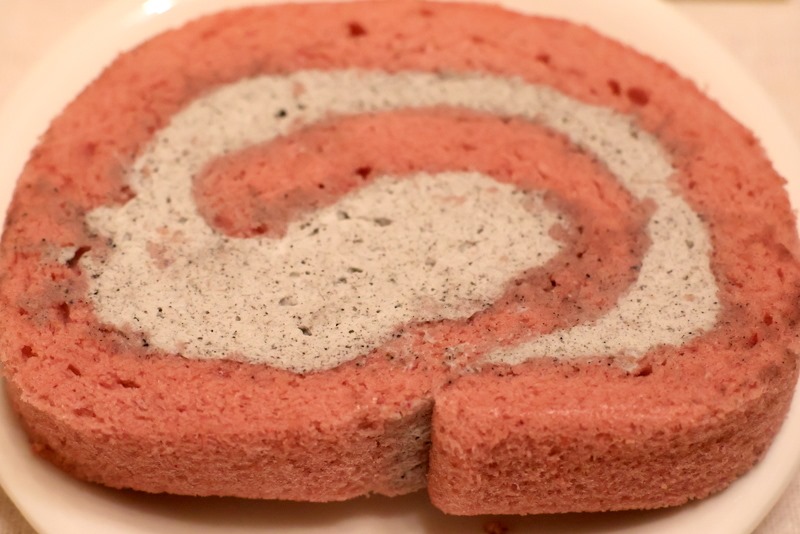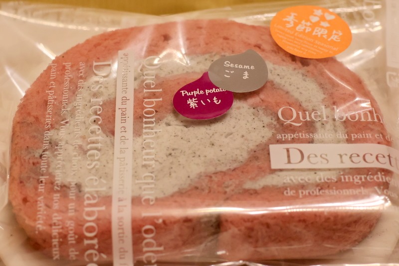 紫いもと黒ごまのロールケーキ、紫色が鮮やか!食べておいしい、黒ごまきいている!