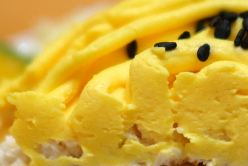 ごまがのっていて、色のインパクトも大きい、クリームの下にはふんわりスポンジケーキもおいしい