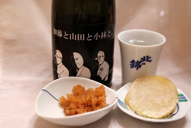 北海道産山田錦のおいしさがたっぷり、小林酒造「加藤と山田と小林と」に余市のカジカの子漬けと大根の酢漬けのおいしいこと!