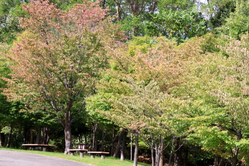 秋風の旭山記念公園で雨上がりに木の上を元気よく貼り李回るゴジュウカラ!